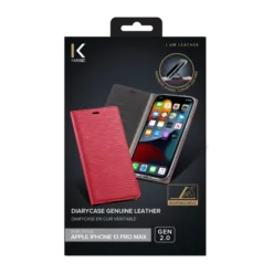 Diarycase 2.0 Coque Clapet En Cuir Véritable Avec Support Aimanté Pour Apple IPhone 13 Pro Max, Rouge Bordeaux