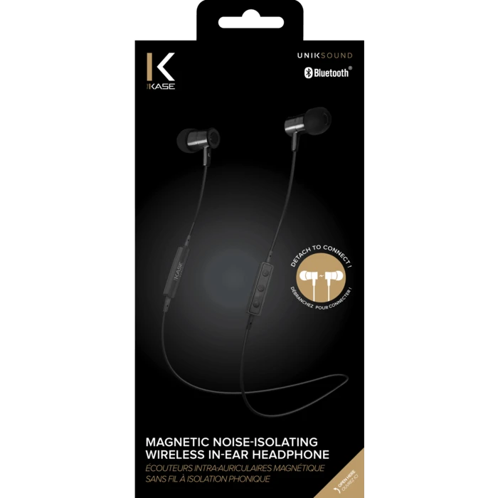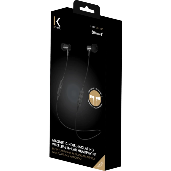 Le coffret inclut une paire d’écouteurs intra-auricuires sans fil isonts et magnétiques, 3 tailles de tours d’oreille, 3 tailles de coussinets d’oreille, un câble micro-USB, un guide d’utilisation ainsi qu’une pochette pratique pour le transport.
