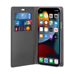 Diarycase 2.0 Coque Clapet En Cuir Véritable Avec Support Aimanté Pour Apple IPhone 13, Noir Minuit