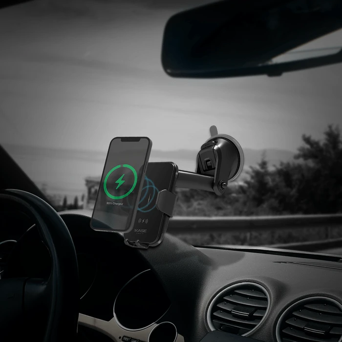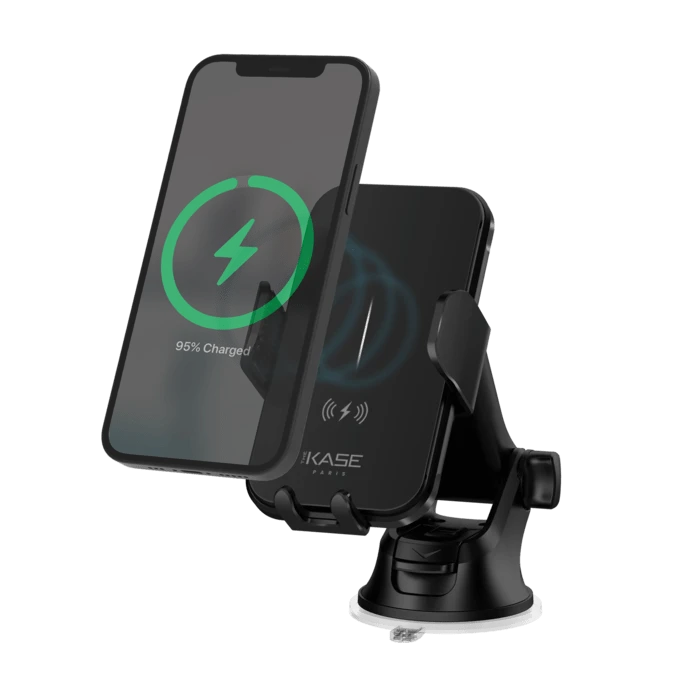 Contenu de l’embalge : Chargeur sans fil, support voiture Ă ventouse, support voiture Ă grille d’aĂ©ration, câble de chargement USB-C de 1 m et mode d’emploi