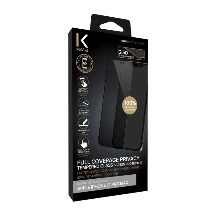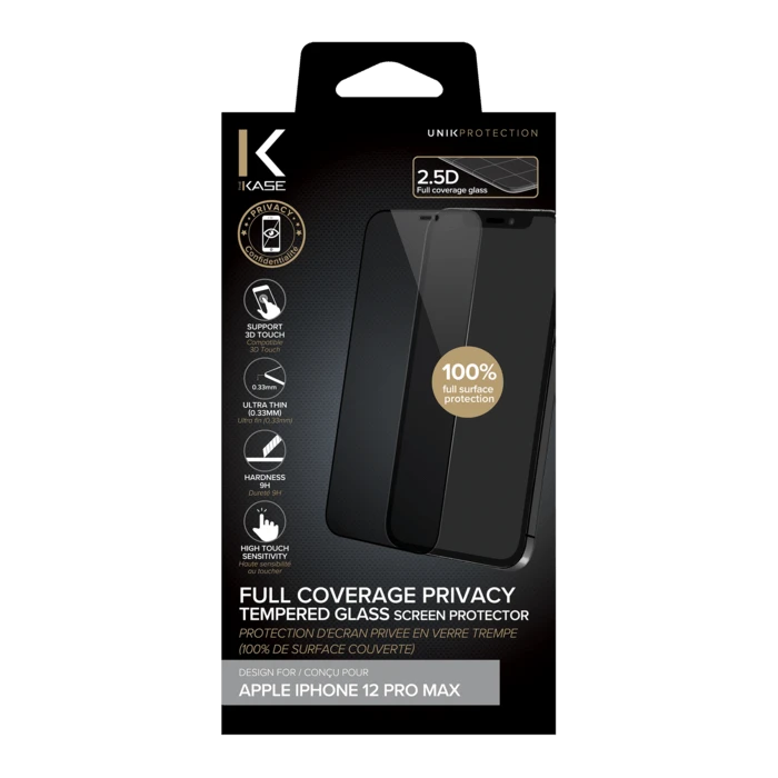 Avec un tel ajustement, cette protection d’écran en verre s’harmonise bien avec tous vos autres accessoires pour smartphone, comme vos étuis préférés ! Donnez à votre iPhone protection qu’il mérite et conservez une confidentialité maximale avec cette Protection d’écran en verre trempé et à couvrance totale